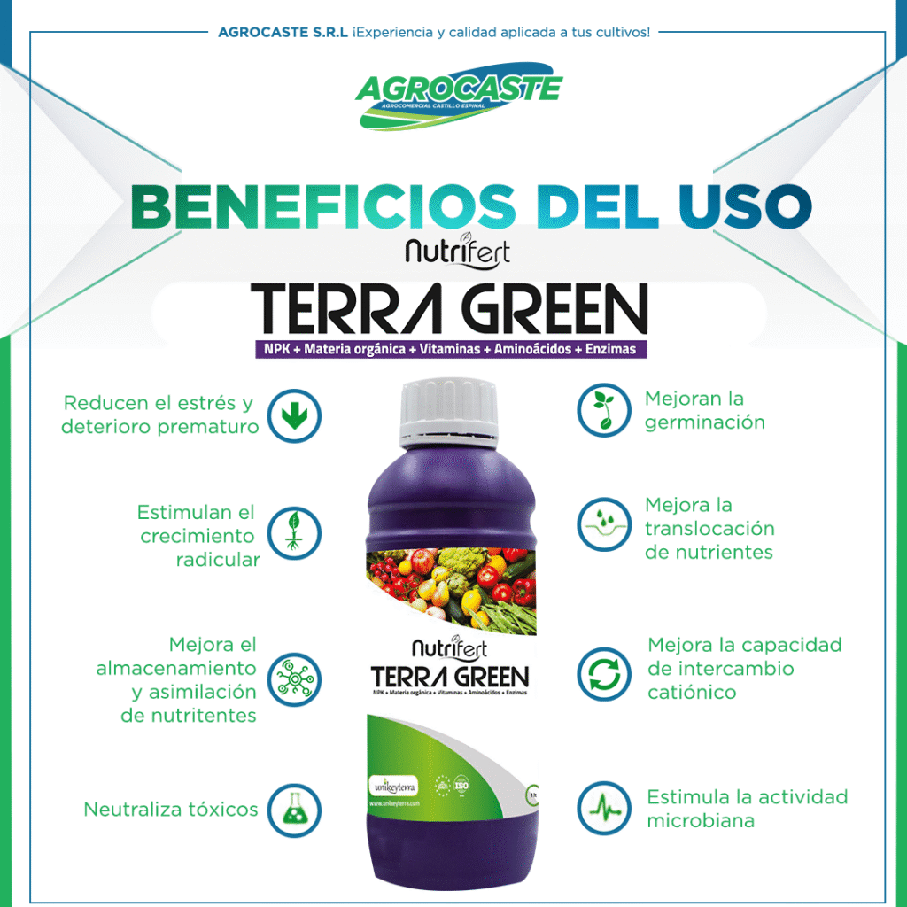 Terra Green es producto excepcional, unico en el mercado, balanceado a la perfección con características sorprendentes para llevar tus cultivos al más alto nivel con resultados nunca antes vistos.